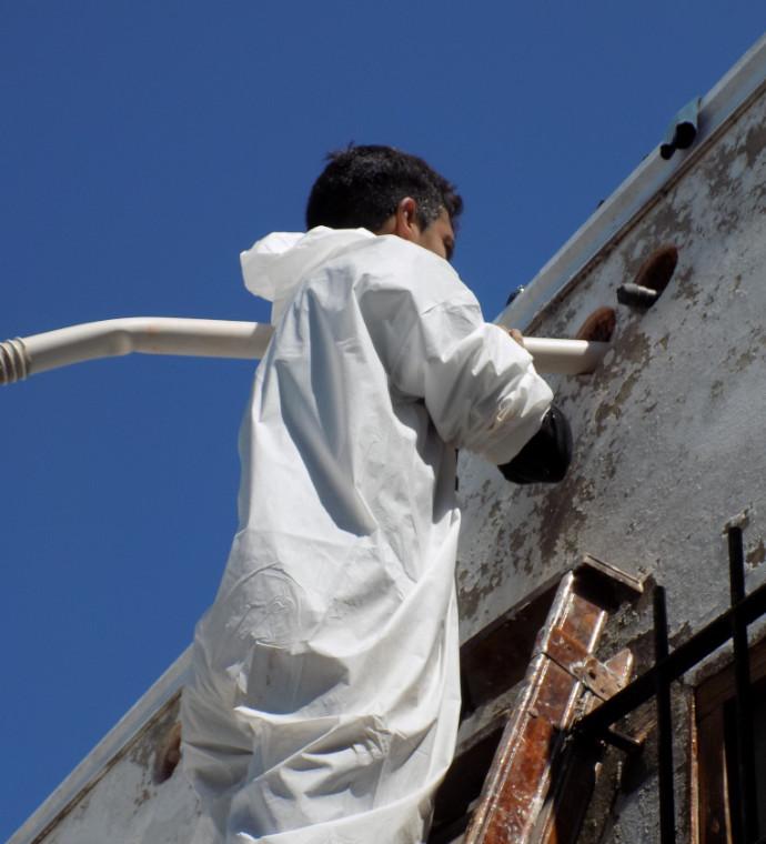 Rociado sobre pared (ladrillo, placas, etc) y techo o cubierta (chapa, losa, etc).
