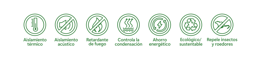 Es el único aislante térmico, acústico y de control de condensación en una sola aplicación. Se compone de fibras de celulosa preparadas mediante procesos mecánicos y tratadas químicamente para resistir al fuego.